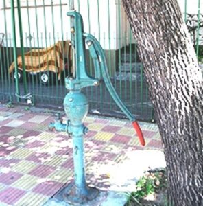 que se encontraba debajo de la bomba de agua. Aquellas bombas manuales: